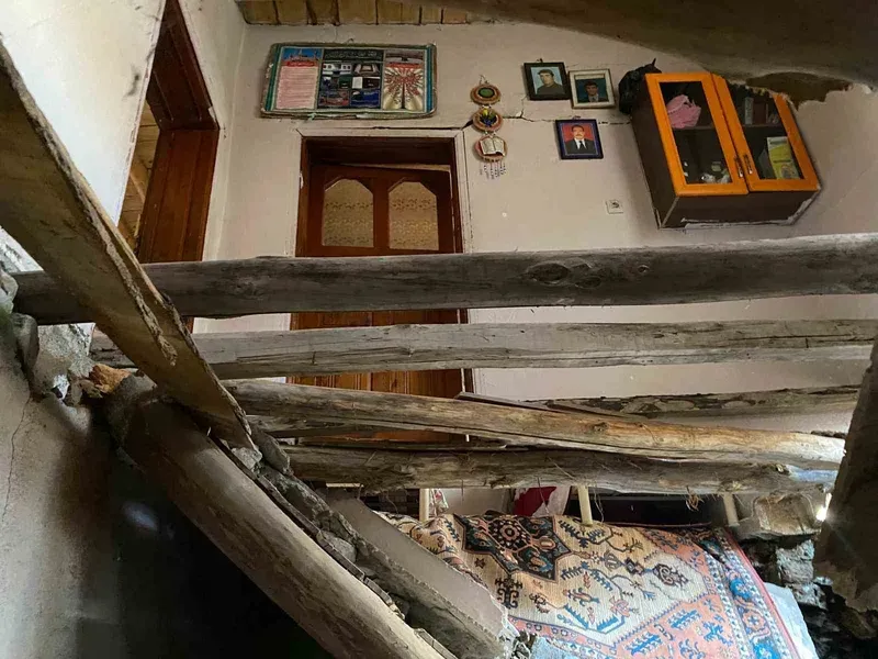 Çatak’ta 2 katlı evin toprak damı çöktü