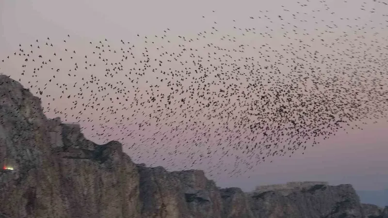 Van Kalesi’nde eşsiz bir gösteri: Sığırcık kuşları havada dans etti