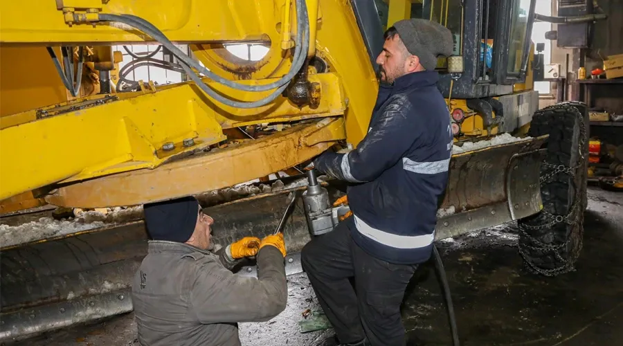Van Büyükşehir Belediyesi, yoğun kar yağışıyla birlikte merkez ve kırsal mahallelerde yaşamı olumsuz etkilememek için karla mücadele çalışmalarını titizlikle sürdürürken, bir yandan da bu mücadelenin temel taşı olan iş makinelerinin bakım ve onarımına büyük önem veriyor. Hizmetin kesintisiz devam edebilmesi için ekipler, gece gündüz demeden çalışıyor.
