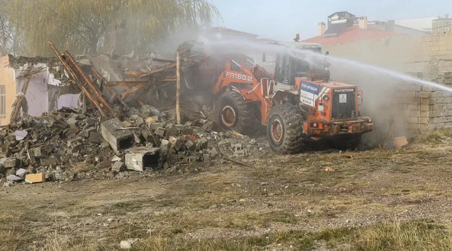 Van Büyükşehir Belediyesi, Süphan Mahallesi'nde İpekyolu Caddesi ile Elmalık Yolu'nu birleştirecek 30 metrelik imar yolunun yapımı için yıkım çalışmalarına başladı.