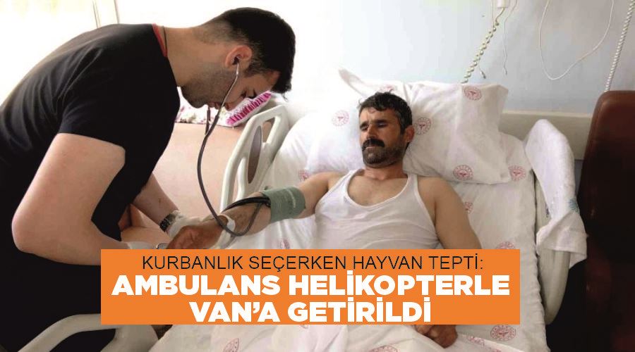 Van’ın Bahçesaray ilçesinde kurbanlık seçerken büyükbaş hayvanın teptiği vatandaş, ambulans helikopterle sevk edildiği Van Eğitim ve Araştırma Hastanesinde tedavi edildi.