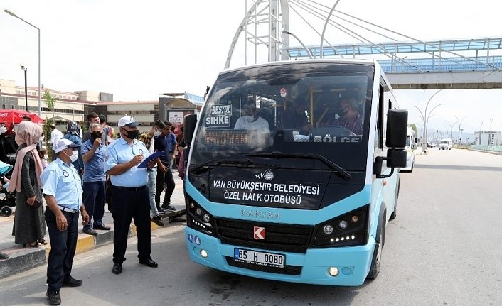 Van Büyükşehir Belediyesi, 81 ilde eş zamanlı olarak düzenlenen korona virüs denetimleri kapsamında il genelinde bulunan toplu taşıma araçlarında denetim yaptı.