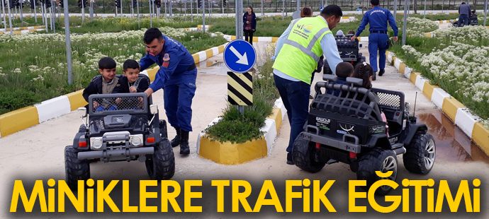 Trafik polislerinin verdiği komutlara göre trafik ışıklarına uyma, yaya geçitlerini doğru kullanma ve diğer trafik kurallarını öğrenen minikler, öğrendiklerini uygulamak için de birbirleriyle yarıştı.