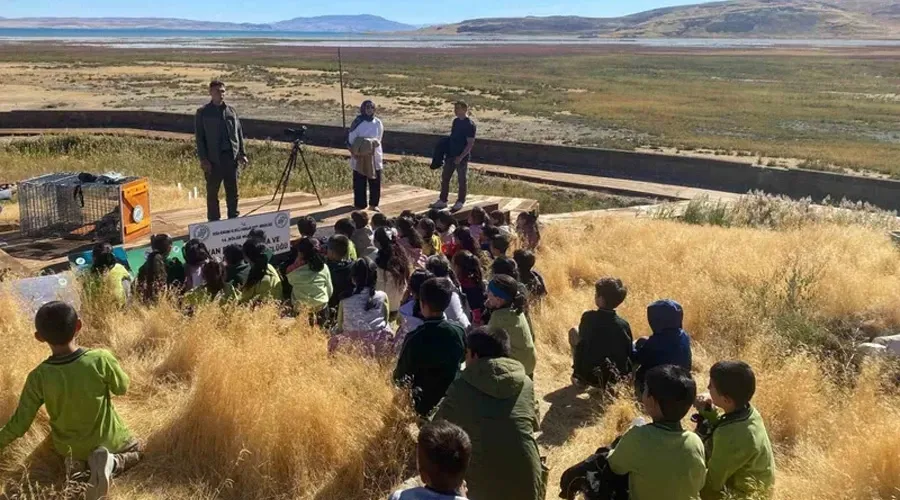 Doğa Koruma ve Milli Parklar (DKMP) 14. Bölge Müdürlüğü ekipleri tarafından öğrencilere tabiatın korunması için eğitim veriyor.