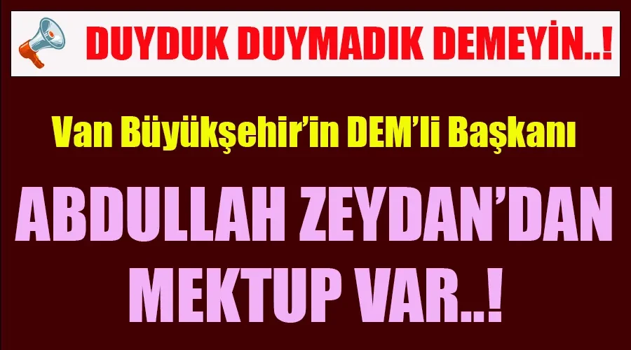 Göreve geldikten sonra işe aldığı ve Basın Yayın Müdürü yaptığı, 1 yıldan fazla tutuklu kalan ve genel yayın yönetmenliğini yaptığı televizyonu PKK/KCK terör örgütü propagandası yapmaktan kapattıran Serdar Altan aracılığı ile Van Postası Gazetesi’ne mektup gönderen, DEM’li ve hükümlü Abdullah Zeydan, mektubunda şu ifadelere yer vermiş;