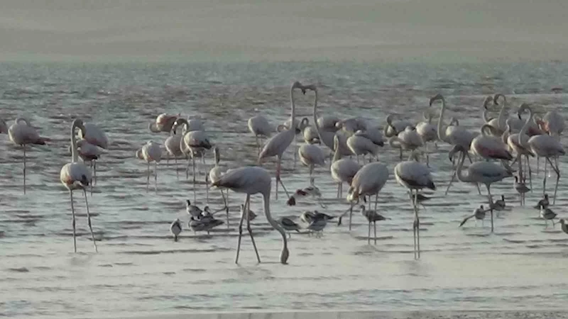 Van Gölü havzasının narin misafirleri flamingolar, yaz mevsimiyle birlikte Erçek Gölü’nde yeniden boy göstermeye başladı. Gölün sığ ve tuzlu sularını tercih eden bu zarif kuşlar, sabahın erken saatlerinden itibaren sürüler halinde göl yüzeyinde süzülerek adeta görsel bir şölen sunuyor. Göç rotaları üzerindeki önemli duraklardan biri olan Erçek Gölü, bu yıl da yüzlerce flamingoya ev sahipliği yapıyor. Pembe ve beyaz tüyleriyle dikkat çeken flamingoların gölde beslenmesi, uçuşu ve bir arada oluşturduğu manzaralar, hem doğaseverlerin hem de fotoğraf tutkunlarının ilgisini çekiyor. Sessizliği ve doğal yapısıyla kuşlar için huzurlu bir ortam sunan Erçek Gölü, flamingoların hem dinlenme hem de beslenme alanı olarak dikkat çekiyor. Suyun içinde süzülen zarif siluetleri ve pembe tonlardaki tüyleriyle flamingolar, göl manzarasına ayrı bir renk katıyor. Fotoğrafçılar ve doğa tutkunları, bu görsel şöleni kaçırmamak için bölgeyi sıkça ziyaret ederken, uzmanlar flamingoların korunması ve yaşam alanlarının bozulmaması gerektiğini vurguluyor. Erçek Gölü, bu zarif kuşlar sayesinde Van’ın en etkileyici doğa sahnelerinden birine ev sahipliği yapıyor.