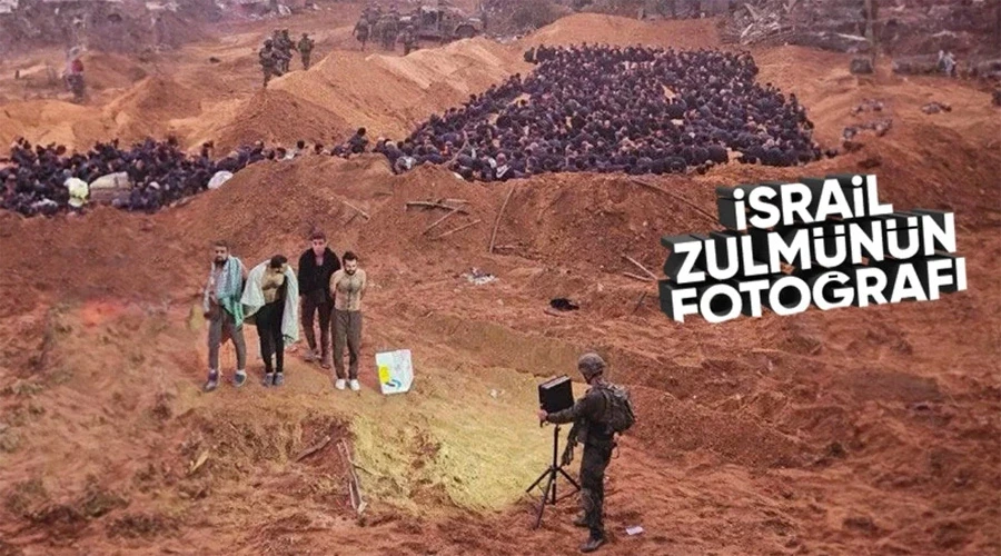 Filistinliler, Hamas üyesi oldukları iddiasıyla İsrail askerlerinin gözetiminde etrafı toprakla kapatılan alanda toplandı. Alıkonulan onlarca siville ilgili dehşet verici durum, Gazze'de kayıtlara geçti.