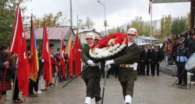Hükümet konağı önündeki Atatürk Anıtına çelenklerin sunulmasıyla başlayan törene, İlçe Kaymakamı Abdulselam Öztürk, Belediye Başkan Vekili Nahide Korkmaz, İlçe Emniyet Müdürü Sedat Haşimoğlu, Cumhuriyet Başsavcısı Engin Kahraman, kamu kurum amirleri, öğretmenler ve öğrenciler katıldı.