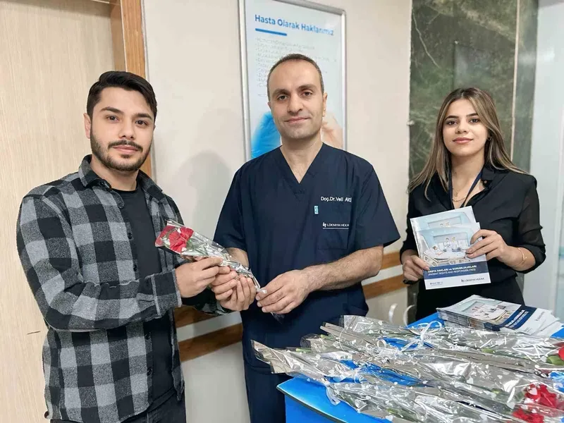 Hasta odaklı sağlık hizmeti anlayışıyla faaliyetlerini sürdüren Lokman Hekim Van Hastanelerinde düzenlenen etkinlikte, Başhekim Doç. Dr. Veli Avcı ile Hasta Hakları Sorumlusu Hülya Eylem Durmaz, hastaları ziyaret etti. Ziyaretlerde Doç. Dr. Avcı, "Hasta Hakları Kanunu" kapsamında hasta haklarının güvence altına alınmasına yönelik bilgiler verirken, Hülya Eylem Durmaz ise hastalara karanfil dağıtarak günlerini kutladı.