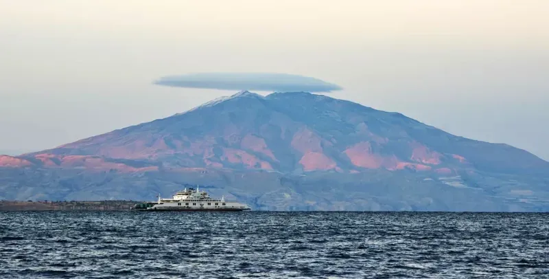 Bitlis’in görkemli simgelerinden biri olan ve 4 bin 58 rakımı ile Türkiye’nin üçüncü yüksek dağı olan Süphan Dağı, doğa tutkunlarını büyüleyen eşsiz bir manzaraya sahne oldu. Akşam saatlerinde dağın zirvesini saran mercek bulutu, Tatvan sahilinden fotoğraflandı. Van Gölü’nün masmavi suları ve üzerinde seyreden feribotla birlikte Süphan Dağı’nın manzarası hayranlık uyandırdı.