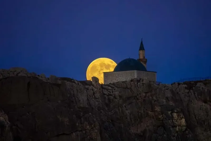 Van Kalesi’nde yer alan Süleyman Han Camii’nin "Kunduz Süper Ay" ile bütünleşmesi görsel şölen oluşturdu.