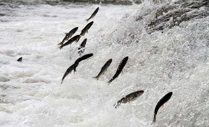 Van Gölü’nde yaşayan ve mayıs ayından itibaren suyun akışının tersine yüzerek tatlı sulara yumurta bırakmak için göç eden inci kefalinin engelleri uçarak geçmeye çalışması hayranlık uyandıran görüntüler oluşturuyor.