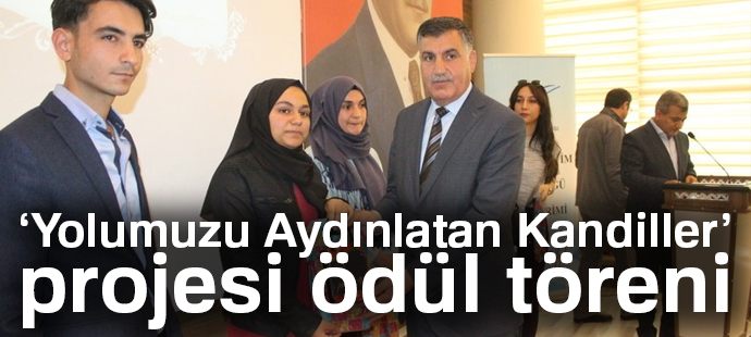 İl Milli Eğitim Müdürlüğü toplantı salonunda düzenlenen ödül törenine İl Milli Eğitim Müdür Yardımcısı Adem Çifci, İpekyolu İlçe Milli Eğitim Müdürü Şükrullah Yavuzer, Tuşba İlçe Milli Eğitim Müdürü Muhlis Ceylani, İl Milli Eğitim Şube Müdürü Şakir Sığınç, İl Milli Eğitim Şube Müdürü Şahin Uçkan, Ar-Ge Proje Koordinatörü Fikret Çakar, Vanlı Şair-Yazar Müştehir Karakaya, Şair Ahmetcan Altıok, okul müdürleri, öğrenciler ve öğretmenler katıldı. Ödül töreni öncesi bir konuşma yapan İl Milli Eğitim Şube Müdürü Şakin Sığınç, 'Yolumuzu Aydınlatan Kandiller' projesi ile öğrencilerin yakın tarihte yaşayan alimler, aydınlar ve topluma önderlik eden şahsiyetlerin hayat hikayelerini öğrenerek rol model edinmelerini amaçladıklarını belirterek, “Bugün dünyada ‘süper güç’ olarak takdim edilen ülkeler, yeni nesle tarihlerini öğretirken, hayalî kahramanlardan ve uyduruk tarihten medet ummaktadırlar. Zira onların tarihlerinde övünülecek, fazilet olarak takdim edilecek hâdiseler pek olmadığı gibi, ‘örnek şahsiyetler’ de yoktur. Onun için ortaya, Teksas, Tommiks, Red-Kit gibi çizgi roman kahramanları, Süpermen gibi hayalî kahramanlar çıkarmışlardır. Oysa bizim tarihimiz baştan başa şanla, şerefle doludur. Tarihimize mührünü basmış sayısız kahramanlar, kumandanlar, idareciler, ilim adamları, sanatkârlar, maneviyat büyükleri, birer masal kahramanı değil, yaptıklarının çoğu tevazu perdesi altına gizlenmiş gerçek kahramanlardır. Bize bu cennet vatanı armağan eden, bu güzelim ülkeyi İslam beldesi haline gelen bu topraklar üzerinde Ezan-ı Muhammedi'nin ilelebet yankılanması için canlarını feda eden, İla-yı Kelimetullah sancağını üç kıtada şerefle dalgalandıran, ilimde, teknikte, sanatta birinciliği kimselere kaptırmayan ecdadımızı tanımak, her şeyden önce bu vatanda yaşayanların boynuna borçtur. Aklımızı ve gönlümüzü aydınlatan binlerce gönül eri ve büyük şahsiyetlerin yaşayış şekilleri ve dünya anlayışları bizleri daha güzele, daha iyiye ve daha doğru yol almamızda birer ışık olacağından hiç şüphem yoktur. Zamana ve mekâna sığmayan Sevgili Peygamberimizin, Mevlana’nın, Hacıbektaş Veli’nin, Yunus’un ve nice büyük şahsiyetlerin fikirlerinin bir yansıması, gönül dünyamızda bir kandil olurda, gönül gözümüzün biraz daha açılmasına vesile olur inşallah. Bu bağlamda bu projede emeği geçenleri kutluyor, öğrencilerimizi tebrik ediyorum” dedi.