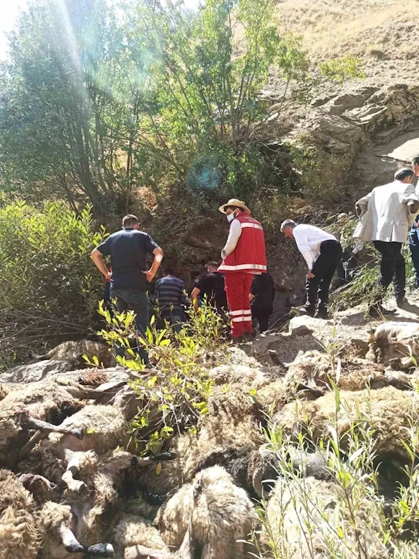 Van’ın Çatak ilçesinde meydana gelen olayda, bir sürüye ait 334 koyun kayalıklardan düşerek telef oldu.
