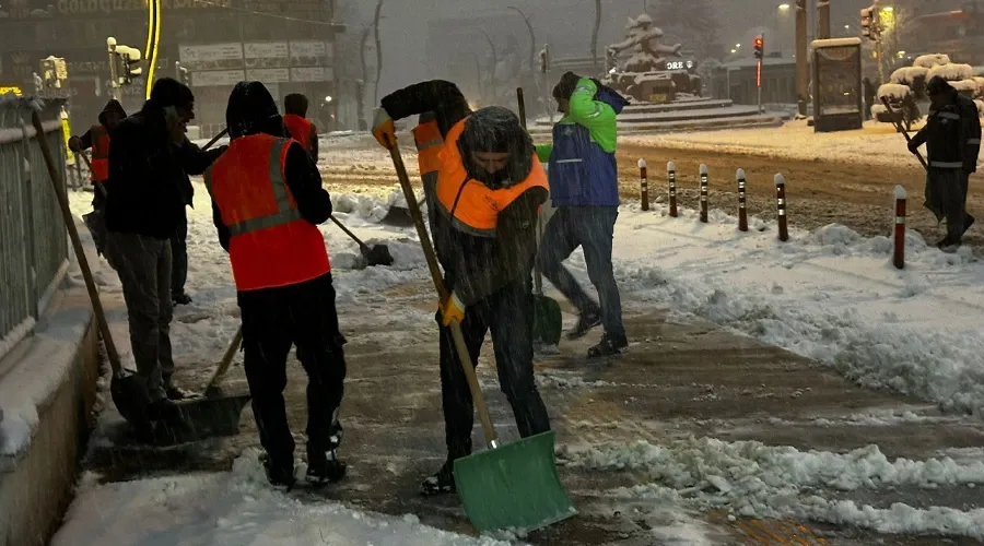 Meteoroloji genel müdürlüğünün uyarılarını dikkate alarak teyakkuza geçen belediye ekipleri, gece boyunca kent merkezi ve ilçelerde kar küreme ve tuzlama çalışmaları gerçekleştirdi. Sabahın ilk ışıklarıyla birlikte çalışmaların temposu daha da arttırılarak, ana caddelerdeki kaldırım ve yaya yollarının temizliğine başlandı.