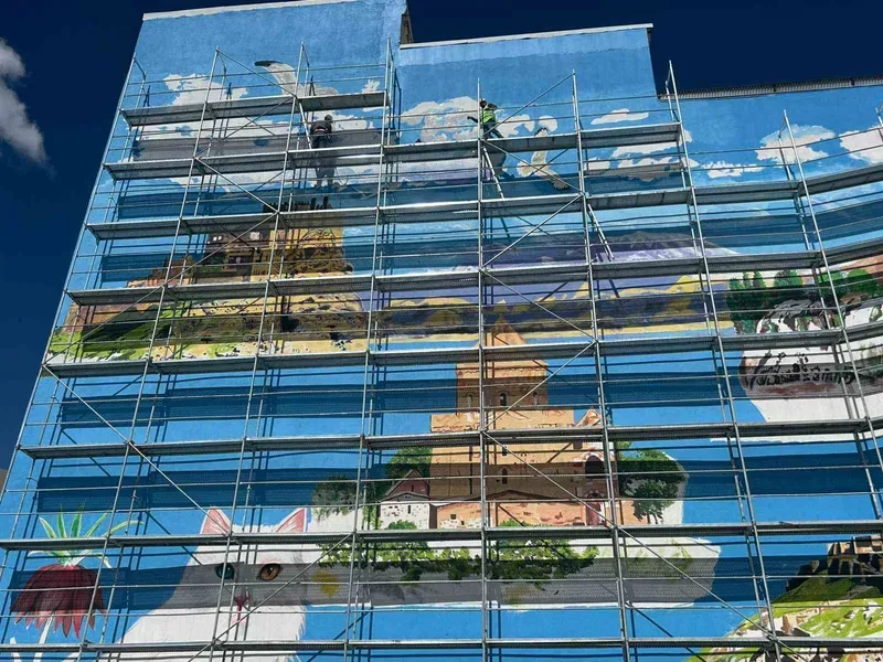 Van’da daha önce kent meydanına büyük boyutlu duvar resimleri yapan ressam Mustafa Çalağan ve Mustafa Akbaş, şimdi de Bedesten Çarşısı’nın duvarlarını renklendiriyor. Çalışmalar kapsamında günlerdir iskelelerin üzerinde mesai harcayan sanatçılar, Van’ın tarihi değerlerini, doğasını ve kültürel mirasını büyük panolara işliyor. Çarşının dış cephesinde yükselen bu renkli figürler, hem vatandaşların ilgisini çekiyor hem de çarşıya farklı bir estetik kimlik kazandırıyor.
